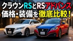 220系クラウンを中古車や新古車で探していると、必ずぶつかるのが「RS」と「RSアドバンス」のどちらを選ぶべきかという悩みです。見た目はそっくりなのに、中古車価格を見ると数十万円の開きがあることも珍しくありません。この価格の差がどこから来て...